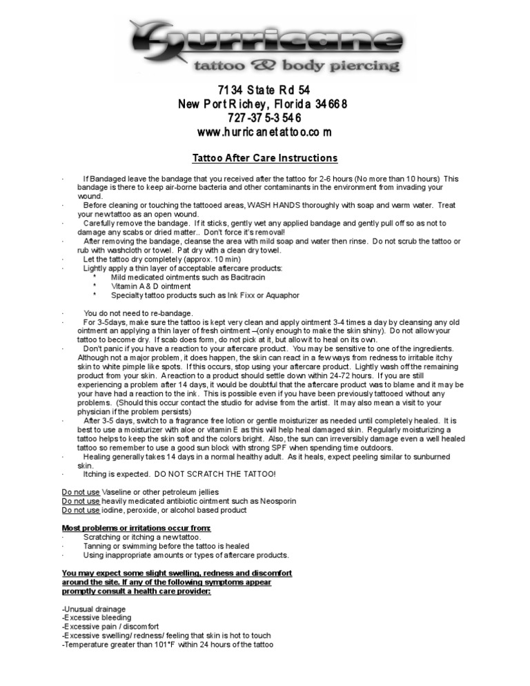 Aftercare Xs Tattoo from s2.docme.su Wear loose, preferably cotton clothing over the fresh tattoo. After you remove the bandage, you should wash your tattoo. No washcloths, bath towels, or sponges on a fresh tattoo. Wash the tattooed area, twice a day (morning and night), using an antibacterial soap with warm water; Consult your tattoo artist for advice on what clothing to wear/avoid. But you cannot wash your tattoo frequently until complete your tattoo healing process. Wash and moisturize your tattoo daily until the scabs are gone. Then remove the wrap carefully and wash the whole tattoo with mild liquid soap and warm water.